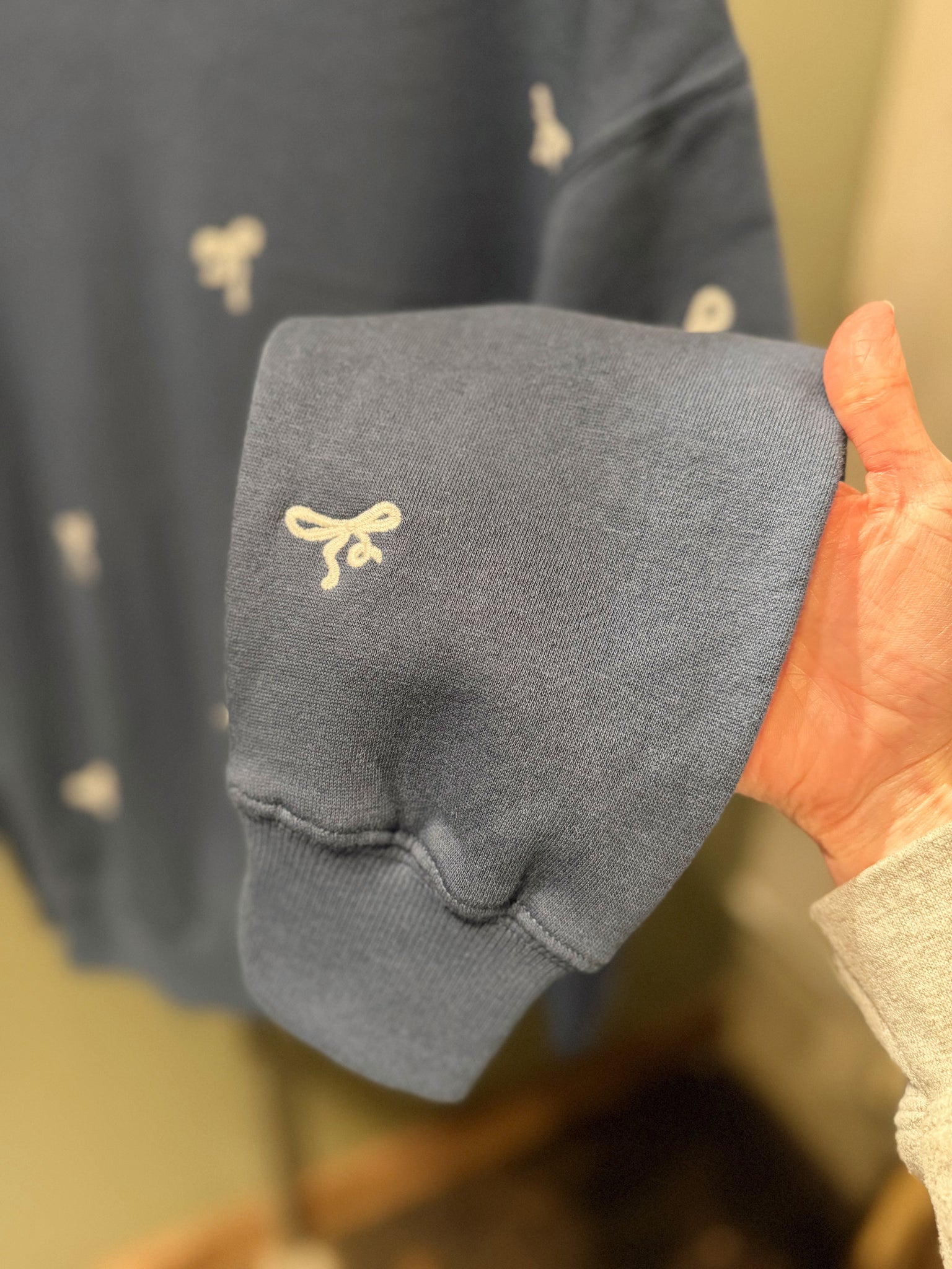Fleece crew sweatshirt with bow embroidery