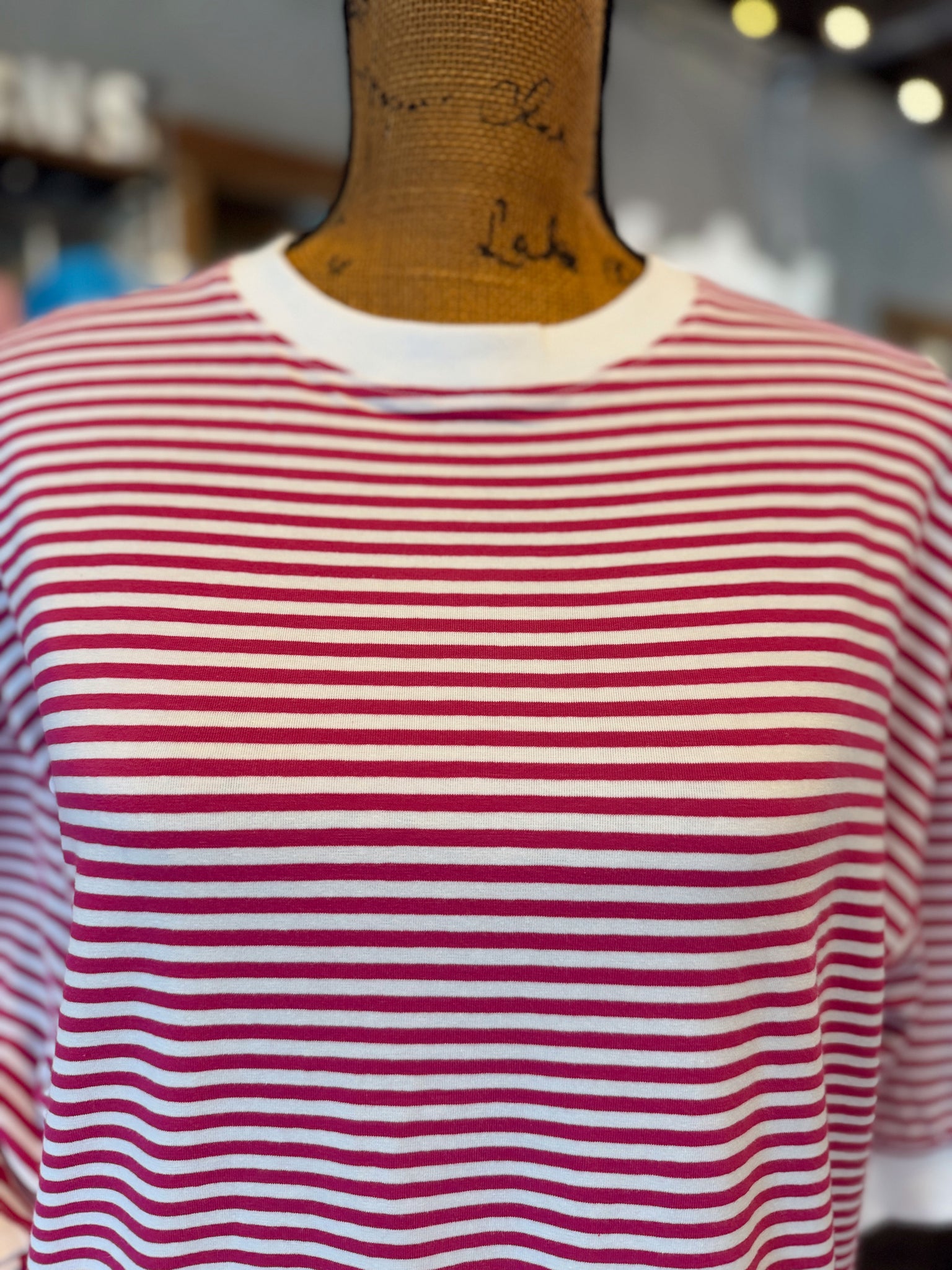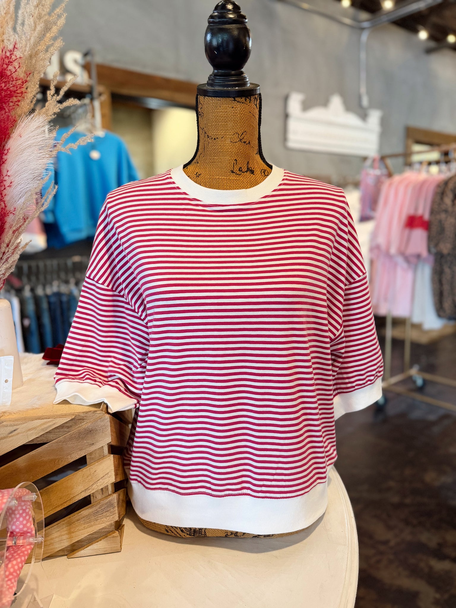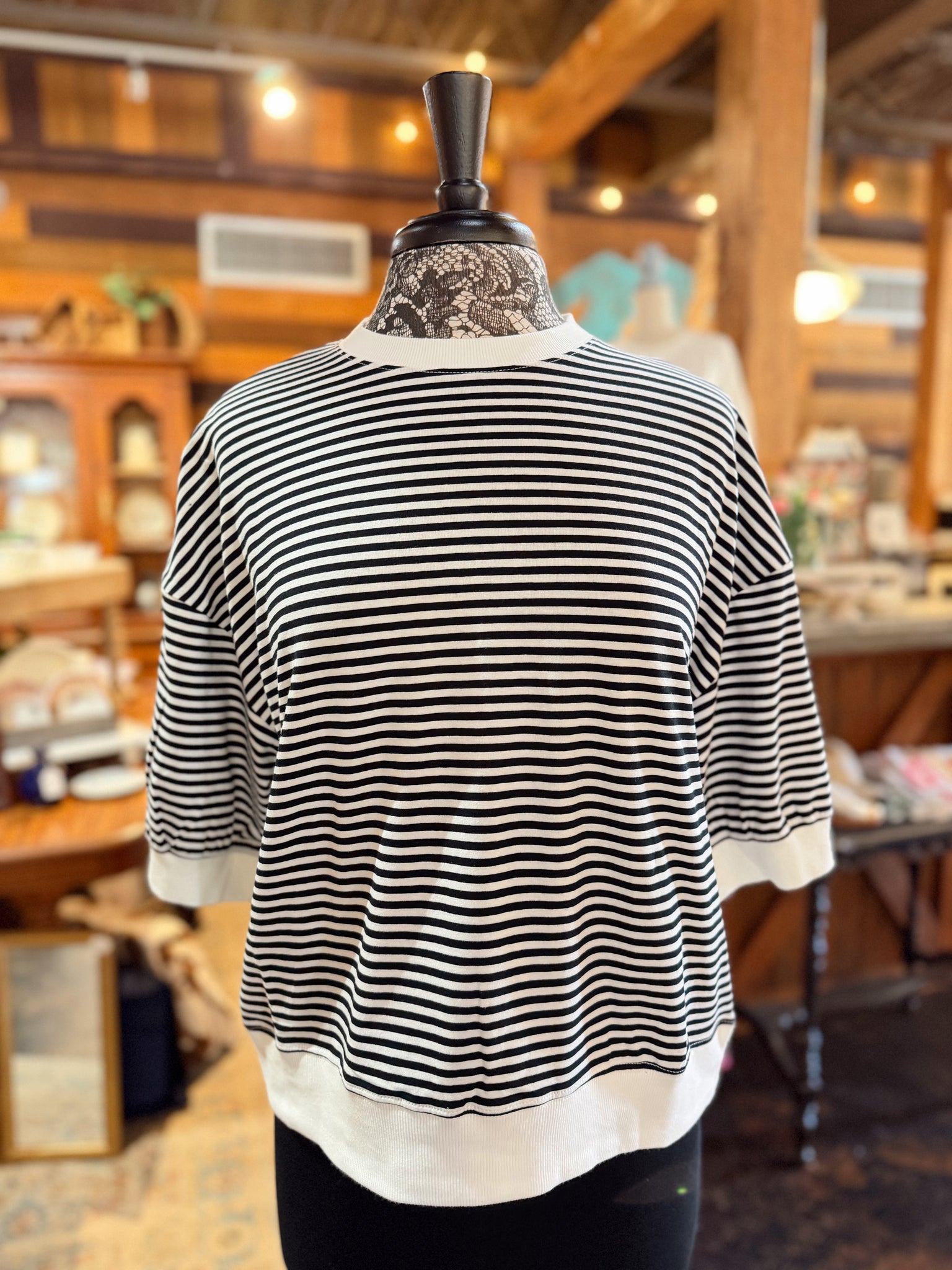 Stripe contrast trim banded short sleeve top