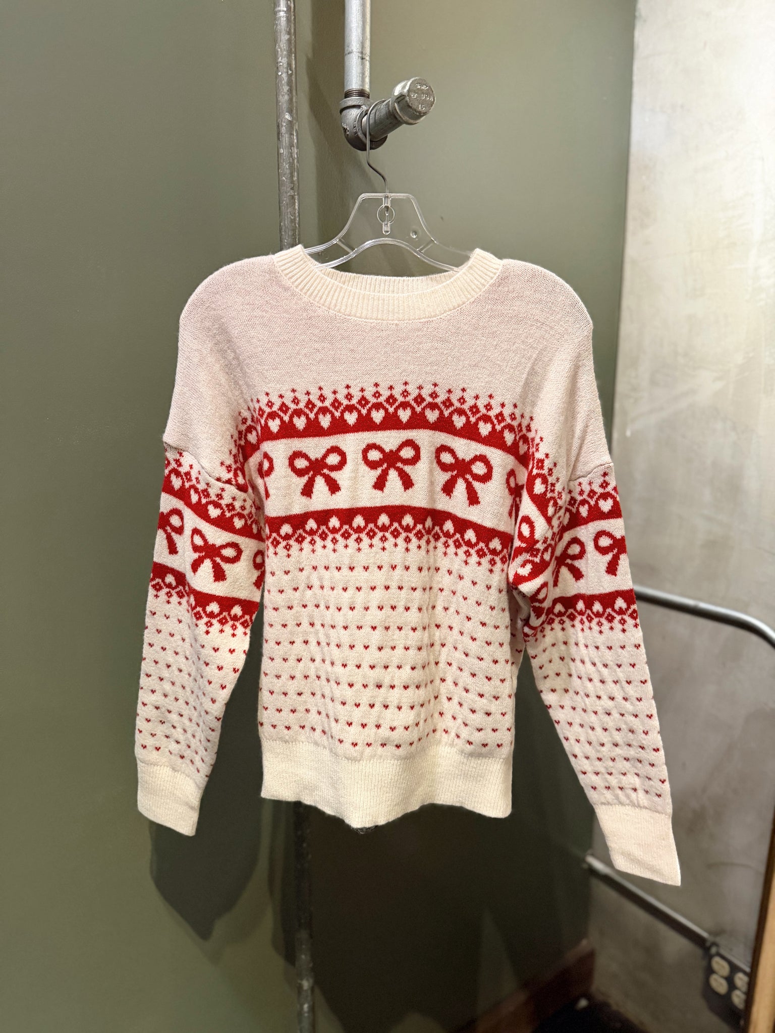 Bow and heart jacquard knit pullover sweater
