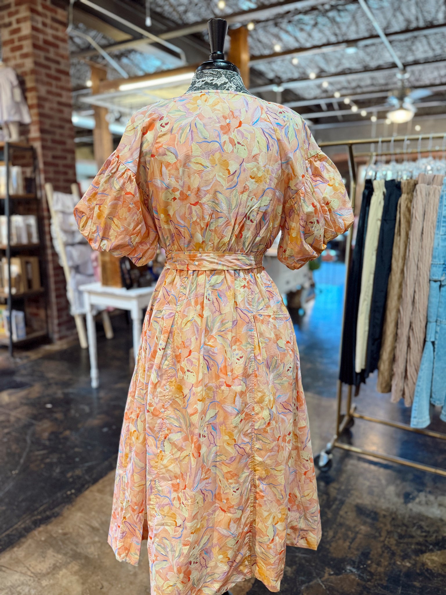 Floral puff sleeve midi dress