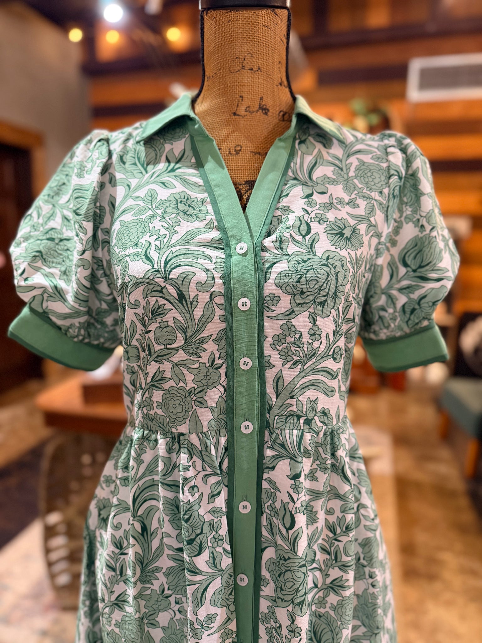 The sweetest little dress for spring 💚 This green floral button-down features a flattering, true-to-size fit with a softly defined waist and the prettiest puff sleeves. The collar + contrast trim give it that extra polished look while still being easy to throw on and go. Lightweight, comfortable, and one you’ll reach for over and over